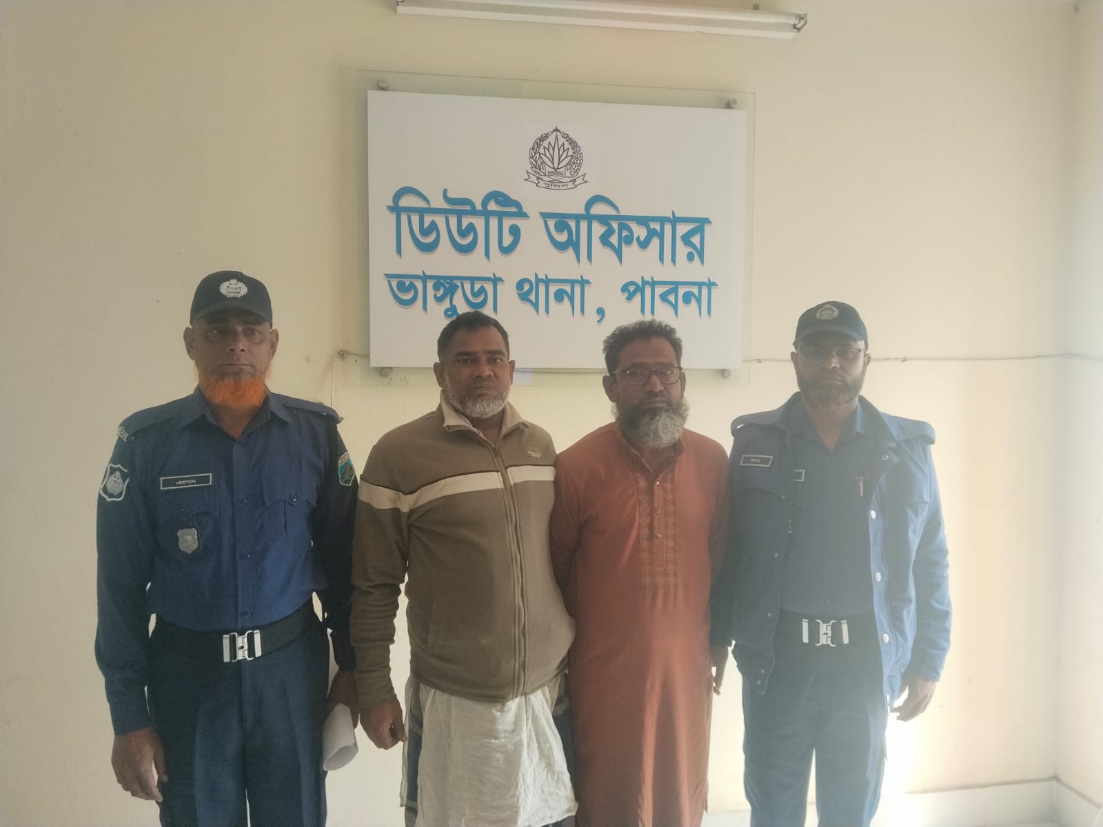ভাঙ্গুড়া থানার ভারপ্রাপ্ত কর্মকর্তা এস এম মুস্তাফিজুর রহমান জানান, ভাঙ্গুড়া থানার মামলা নং-০৬,তাং-২৬/০১/২৬ ইং, ধারা-৪৪৭/৩৮৫/৩৪ পেনাল কোড সংক্রান্ত এজাহারনামীয় আসামী মোঃ মাসুদ রানা (৫৫) ও মোঃ আব্দুল মালেক (৫৩) কে বিজ্ঞ আদালতে প্রেরণ করা হয়েছে।